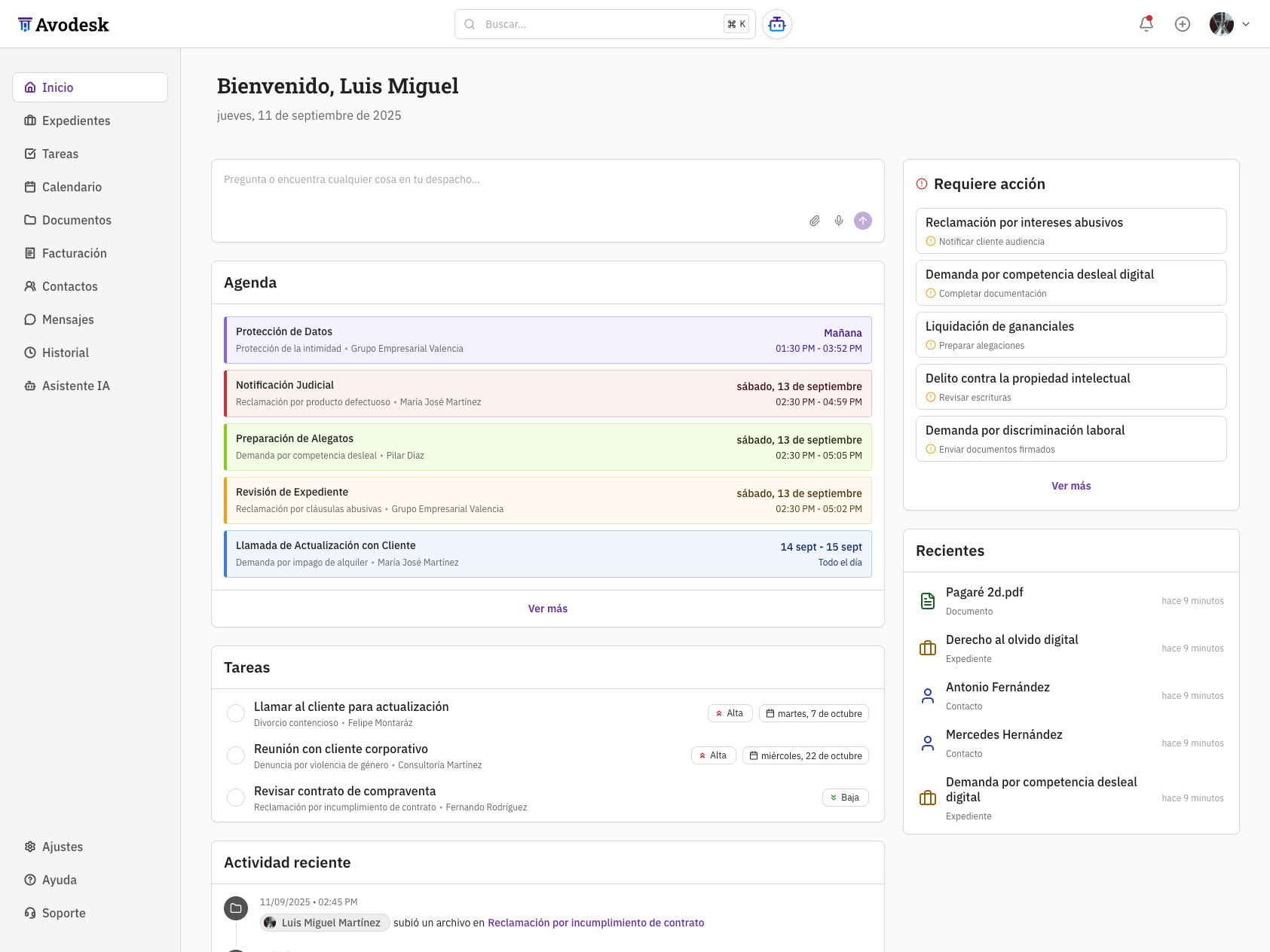Con la administración en piloto automático, puedes aceptar más casos sin saturarte. Clientes más satisfechos, facturación más precisa, y tú durmiendo tranquilo.